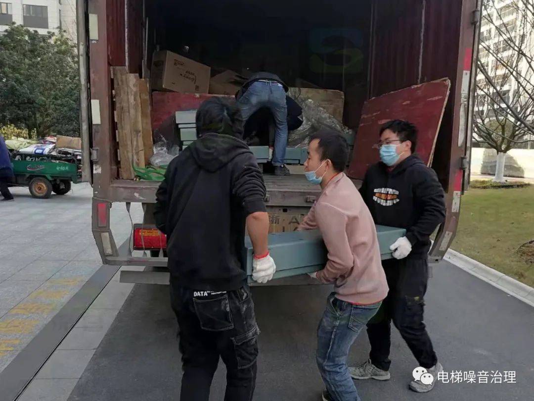 ▲同期,本次电梯降噪产品通过大货车也运达杭州,产品已经送达项目现场。深日团队共同协作,正在有条不紊地接收降噪产品。