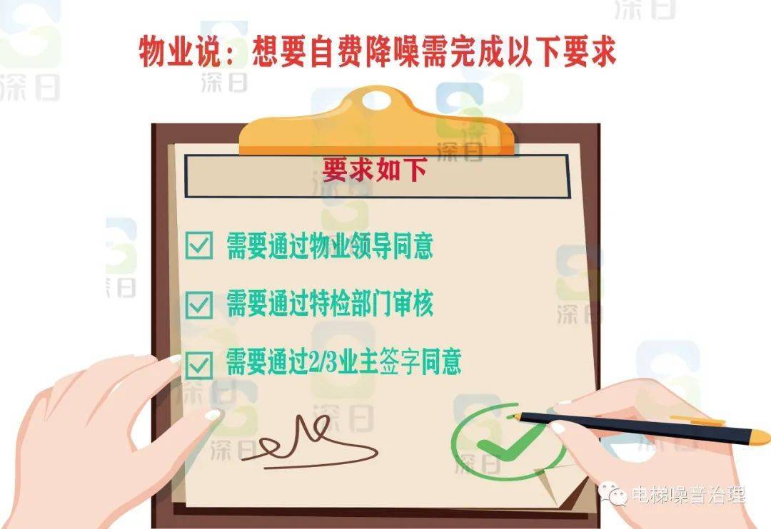 据我所知,电梯降噪一定要经过物业同意。但是对我来说通过物业同意应该不成问题,因为 我打算 自费治理。交付这么多年了,找开发商也没用,肯定是不会管的,物业出钱更是难上加难,况且究其根本也不是物业的问题。基本对于希望不大的事情,我不愿意去浪费自身精力,相对来说,自费找深日做降噪希望更大。