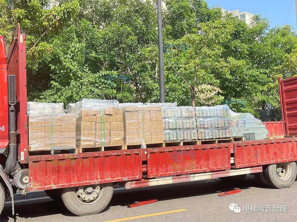 ▲同期,本次电梯降噪产品通过大货车也陆续运达珠海,产品已经送达项目现场。深日团队共同协作,正在有条不紊地接收降噪产品。